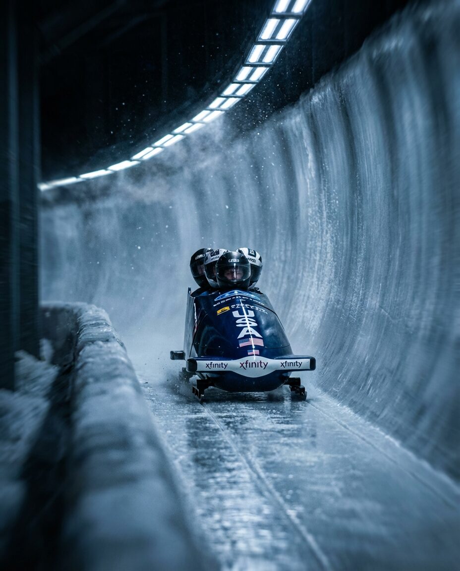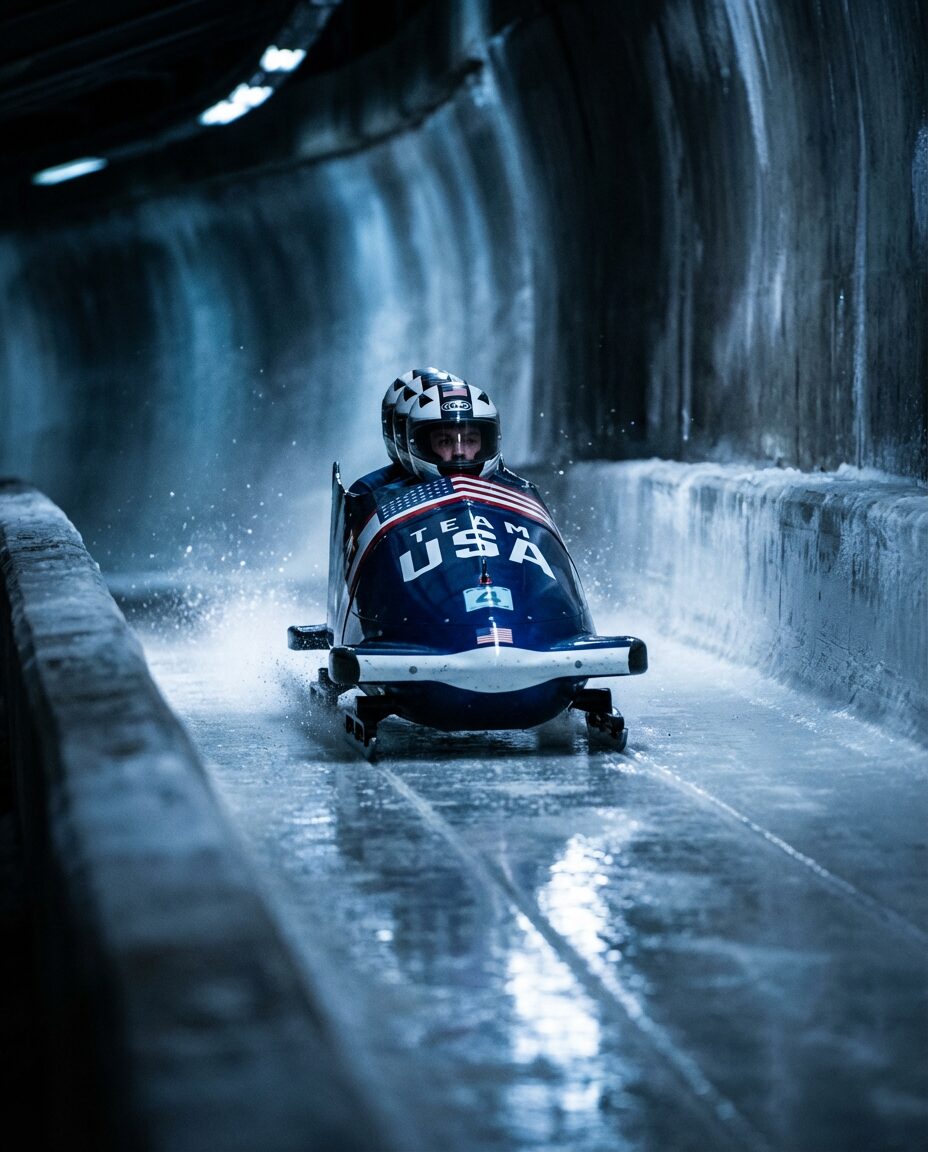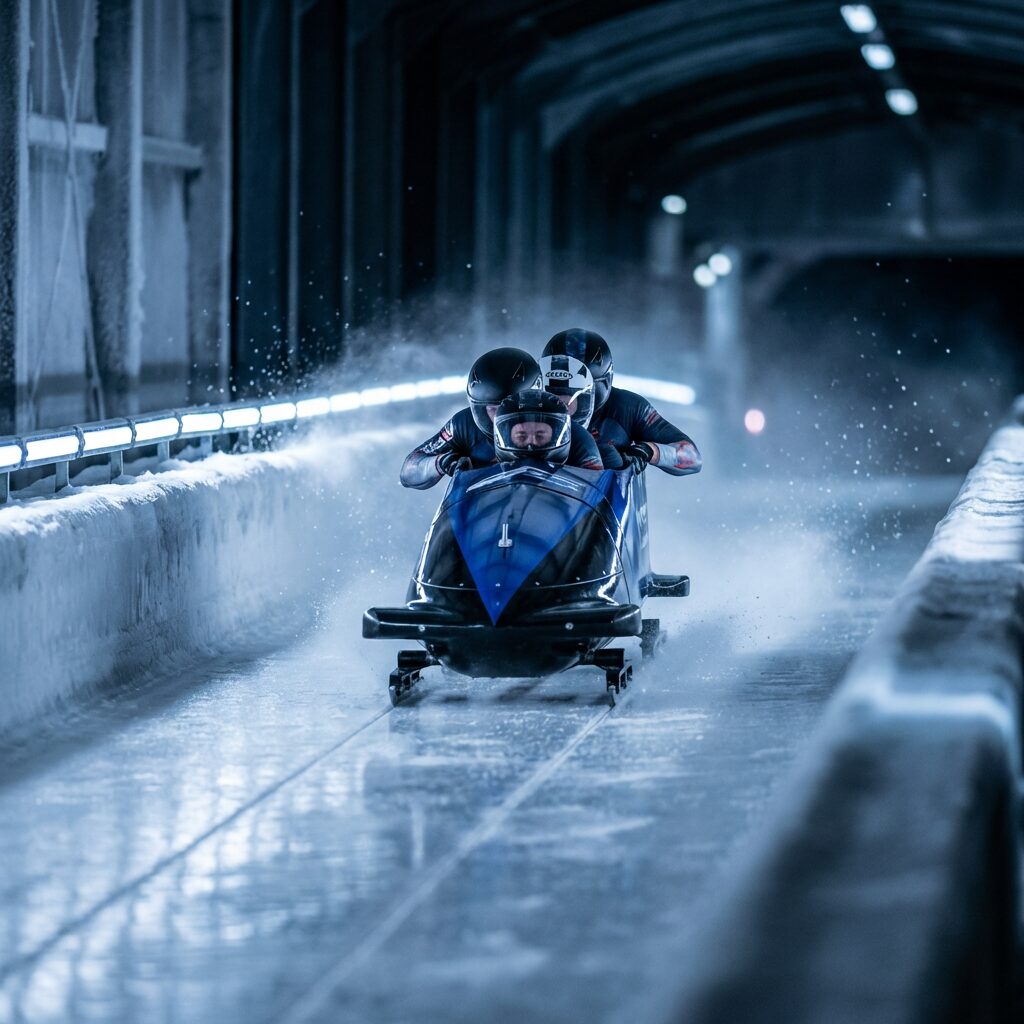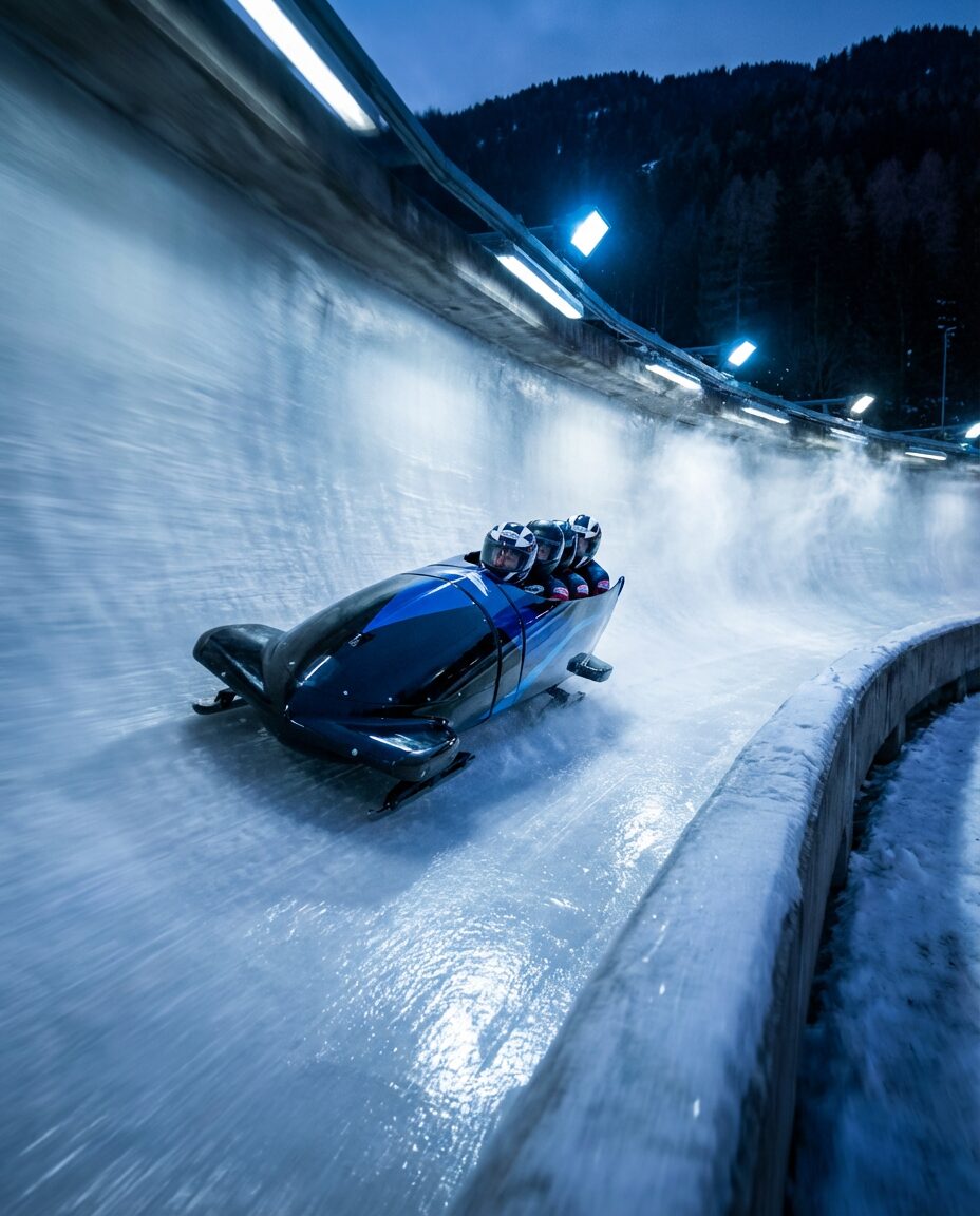 { „prompt“: „A photorealistic cinematic action shot of a professional bobsled racing through an icy track at high speed. Dark background, cold white-blue lighting, sharp reflections on ice, frozen ice spray particles, subtle motion blur on track walls. Shot on full-frame camera with telephoto lens, low angle perspective, shallow depth of field. Cinematic, editorial, ultra-photorealistic.“, „negative_prompt“: [ „blurry“, „low resolution“, „cartoon“, „anime“, „plastic skin“, „distorted face“, „extra limbs“, „text“, „logo“, „watermark“, „artifacts“ ], „aspect_ratio“: „4:5“, „resolution“: „1080×1350“, „style“: „photorealistic, cinematic, sports“ }