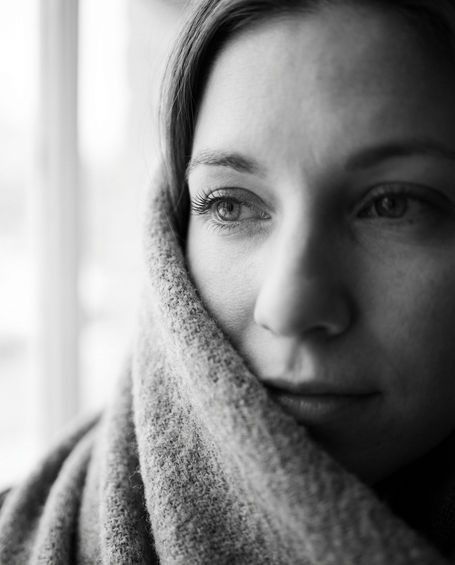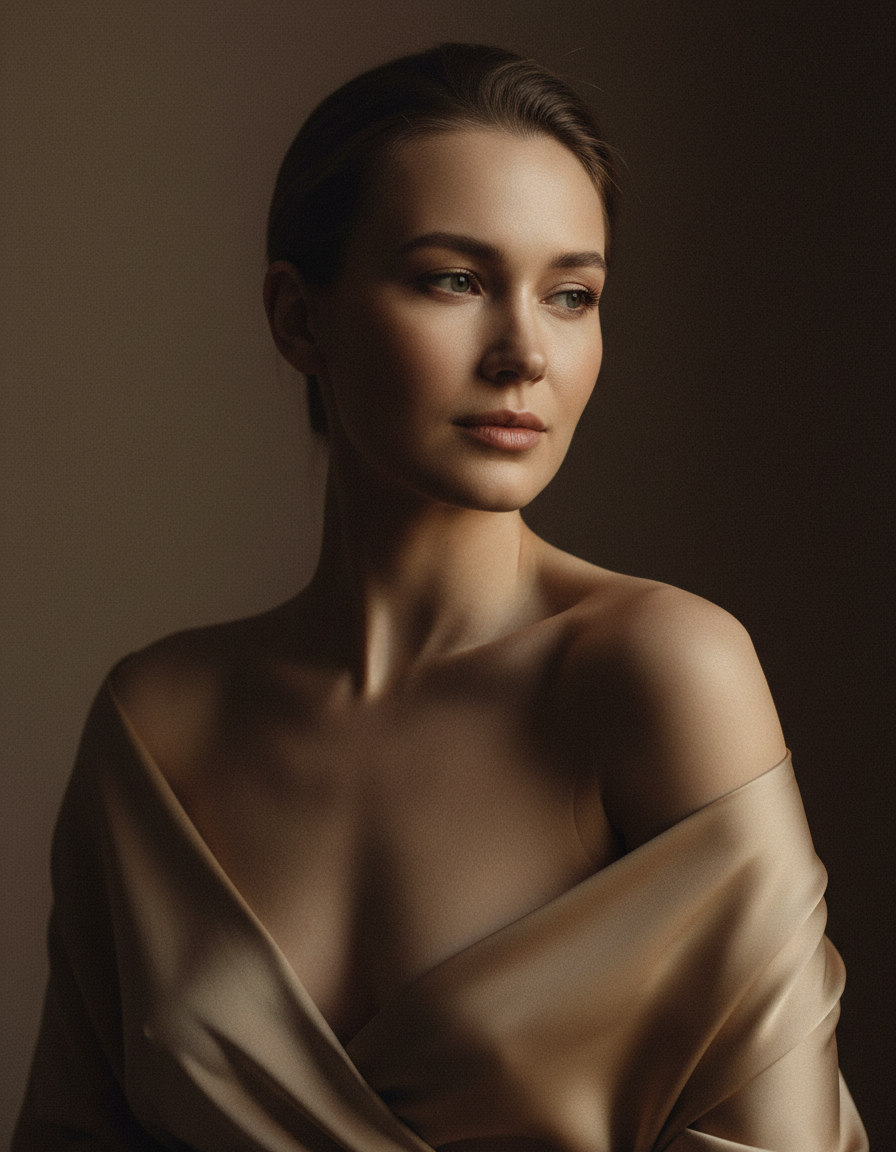 {„prompt“: „romantic intimate side-profile portrait of an anonymous woman, soft cinematic lighting, smooth natural skin texture, gentle glow, calm emotional