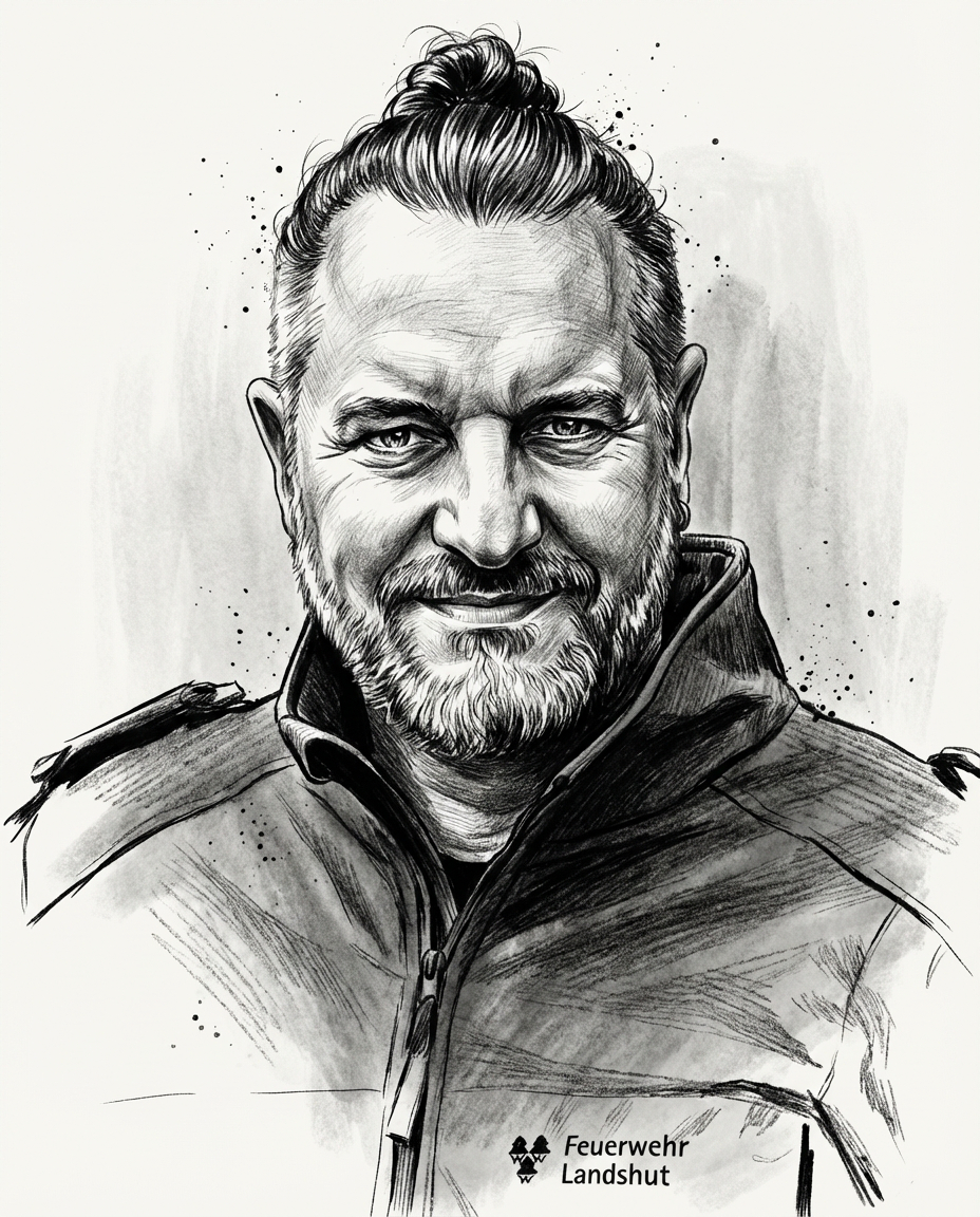 { „prompt“: „dramatic black and white portrait of an adult man, high contrast ink and charcoal illustration, realistic facial features,