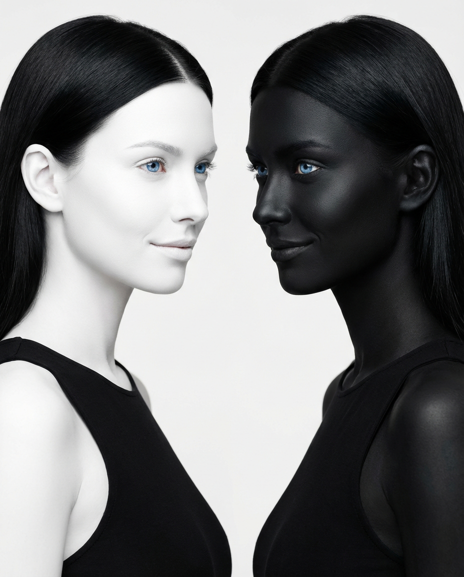 { „prompt“: „black and white extreme close-up portrait of a woman with blue eyes, feminine and calm expression, eyes partially